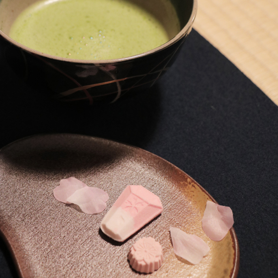 淹れたてのお抹茶に、春の干菓子をいただきました。